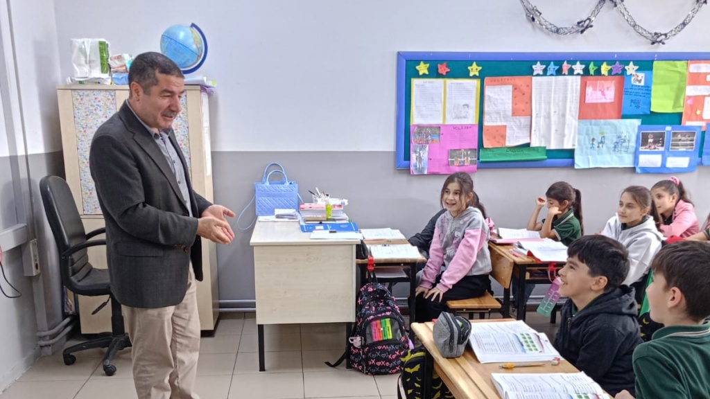 İlçe Milli Eğitim Müdürümüz Hüseyin Özel yeni eğitim öğretim yılının başlaması vesilesiyle okulumuzu ziyaret etti. Sınıfları dolaşan Özel öğrencilerle sohbet ederek yeni eğitim öğretim yılından beklentilerini sordu